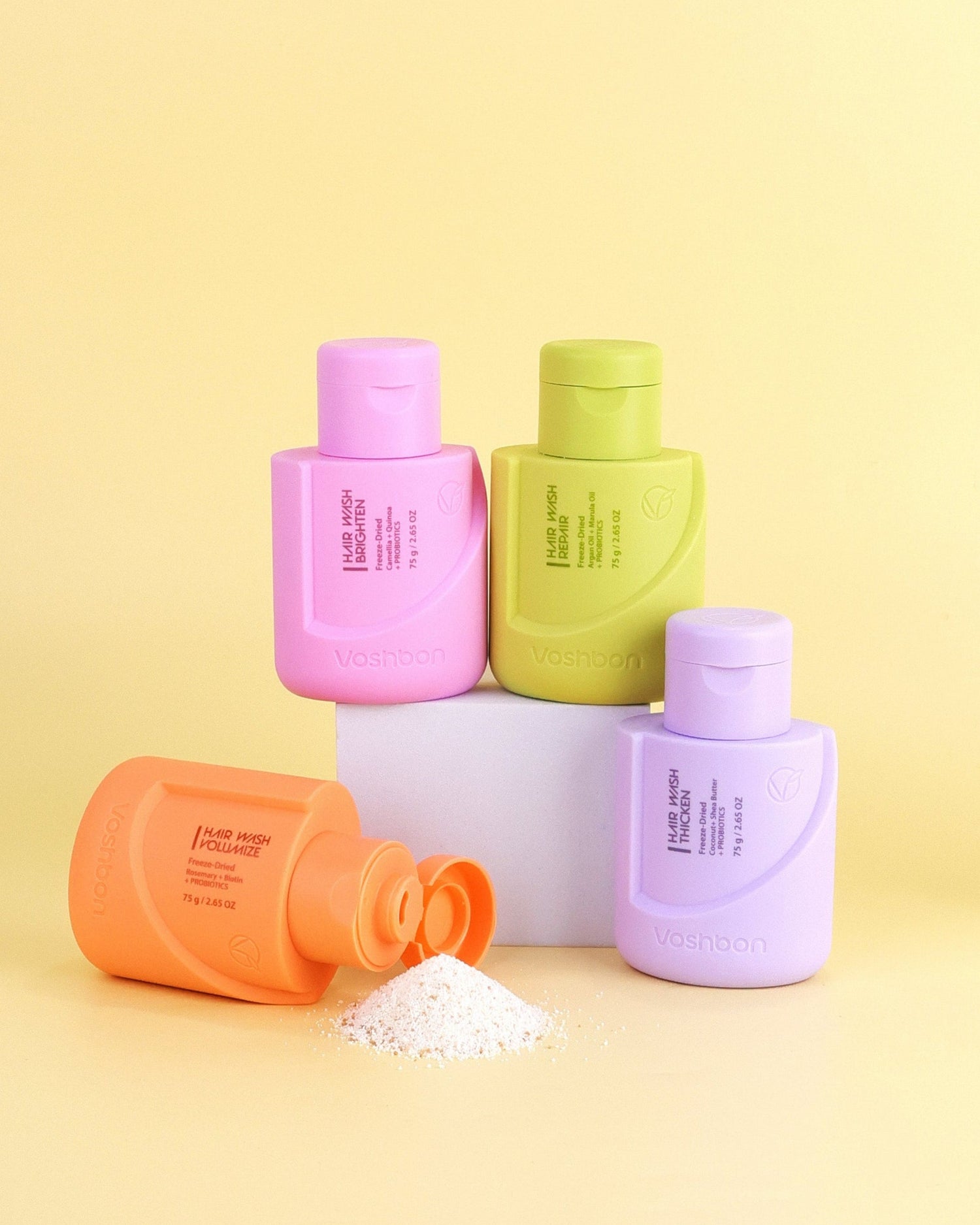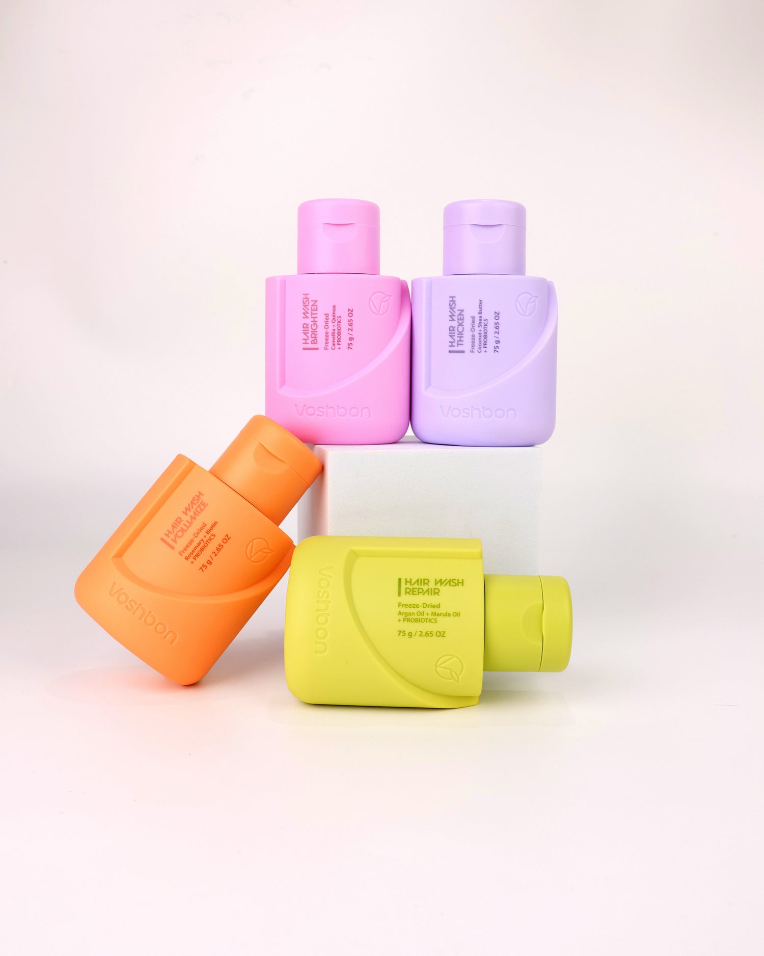 Here’s where Voshbon gets exciting: our Hair Wash is infused with probiotics. These good bacteria interact with your scalp microbiome to: